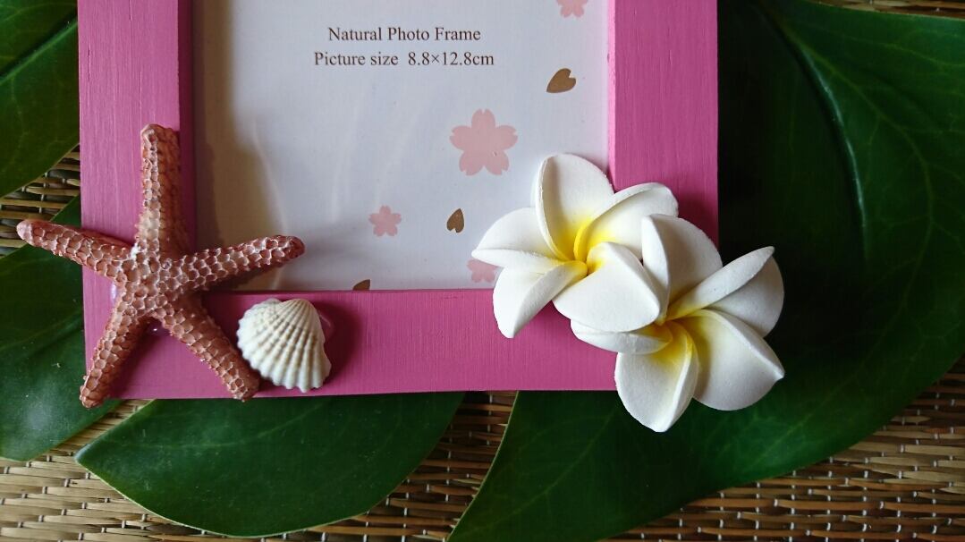 プルメリア、貝殻を使用したフレームです。